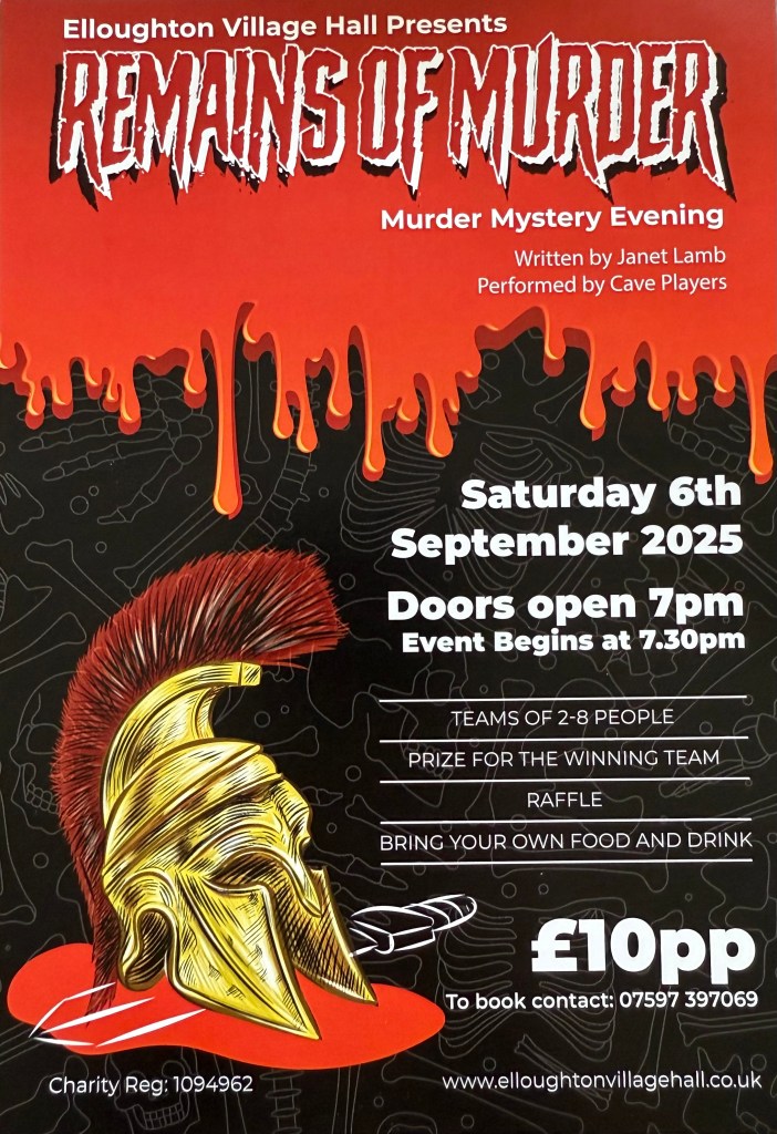No, not us this time but we think you should know that our friends at the Cave Players are presenting a Murder Mystery Evening this September in our usual venue, Elloughton Brough Village Hall.