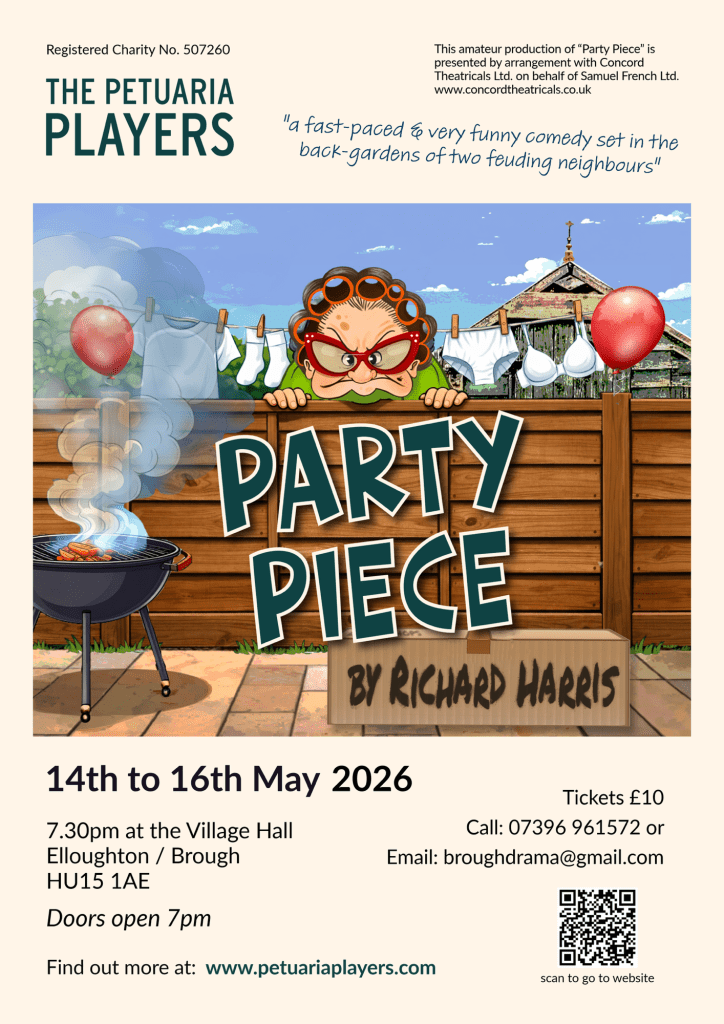 PARTY PIECE, our second play of the season, provides us with the opportunity to cast seven of our actors in this hilarious play from the writer of two of our most popular earlier productions (‘Outside Edge’ and ‘Stepping Out)’ along with dozens of well known TV dramas.