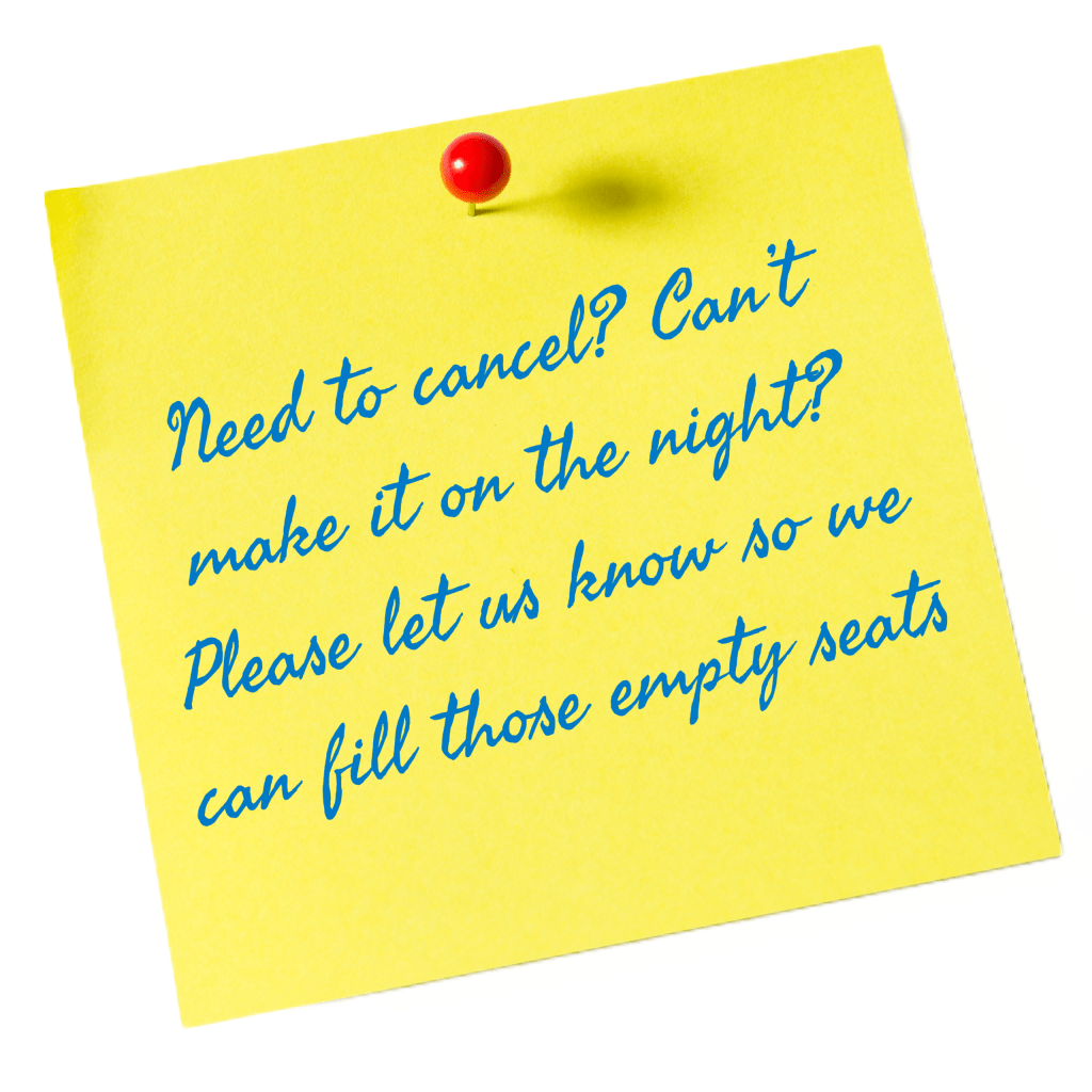 BY PAYING £20 pp IN ADVANCE YOU CAN AVOID THE RUSH AND RESERVE YOUR FAVOURITE SEAT POSITIONS AND PREFERRED PERFORMANCE NIGHT FOR BOTH OUR SEASON’S PRODUCTIONS. (Only available pre-season before the first production in November).